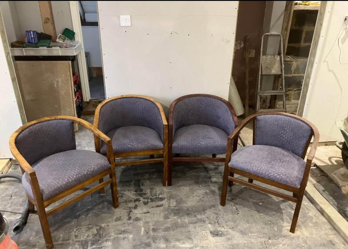 Tub chairs commercial gradeSolid wood frames, upholstered seats and backs.