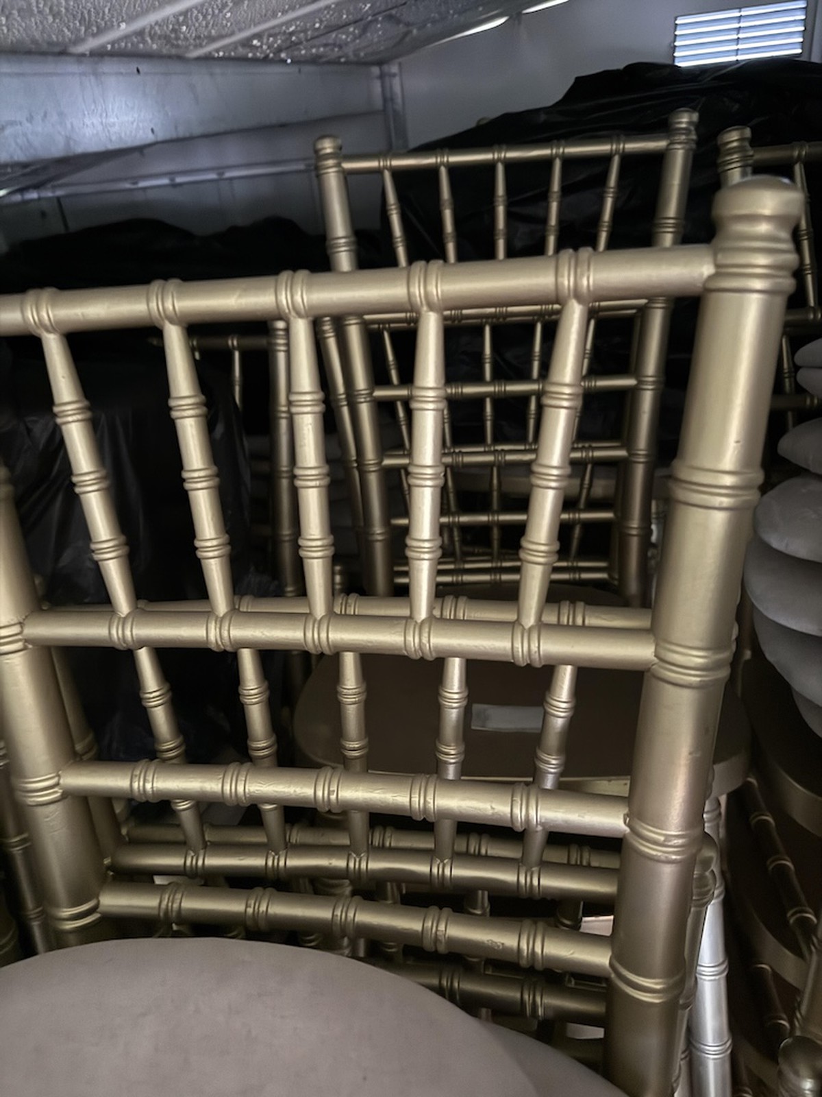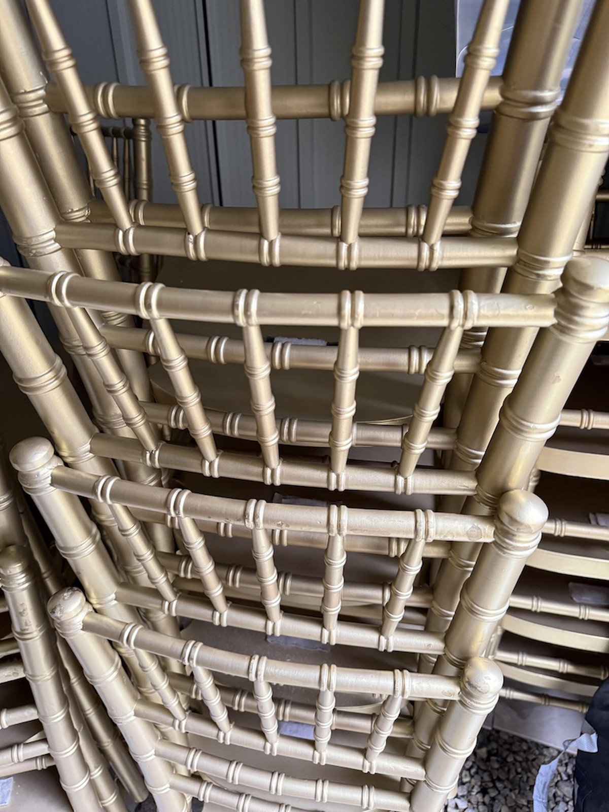 Used 80 gold Chiavari chairs but good conditionAlso 60 chair pads for sale @ £3.50 each