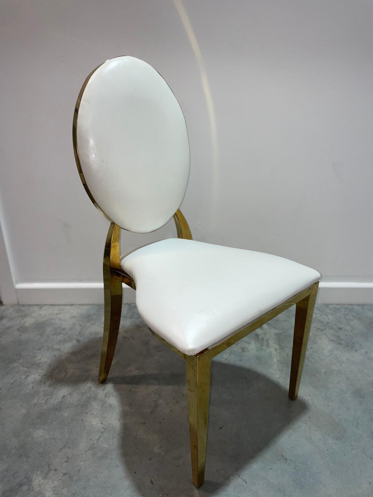 Ex Hire Gold Dior Chairs for sale with white leather padQuantity: