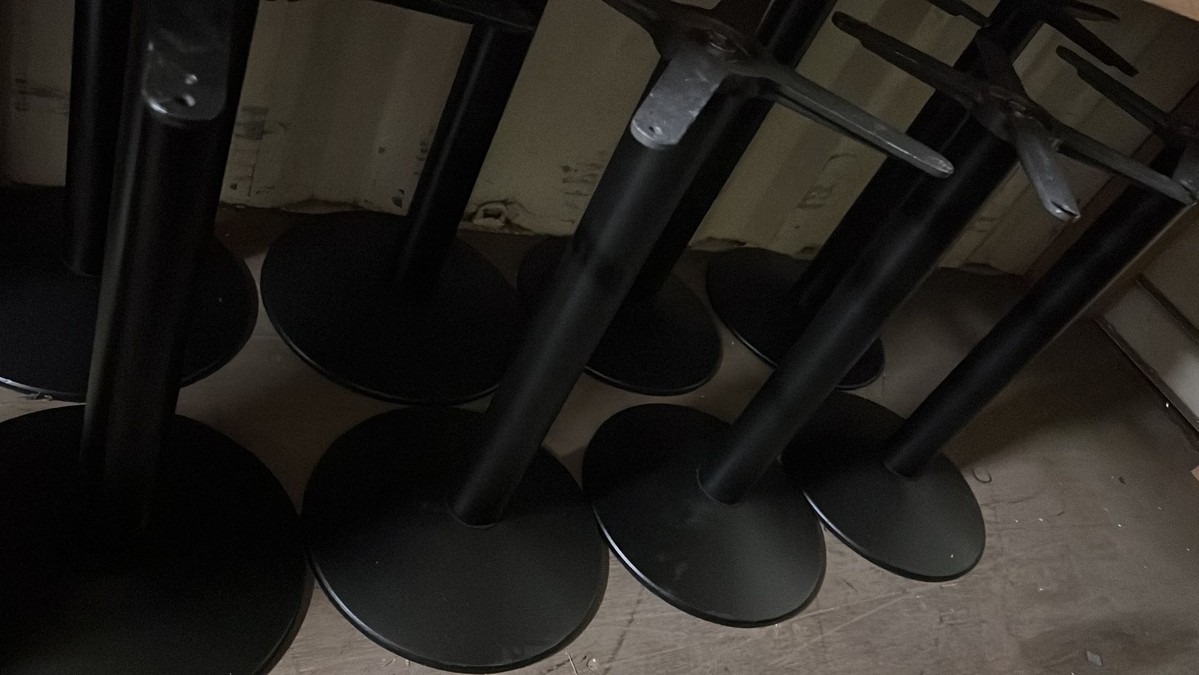 16x White laminate table tops, 600 x 600Black secondhand table base