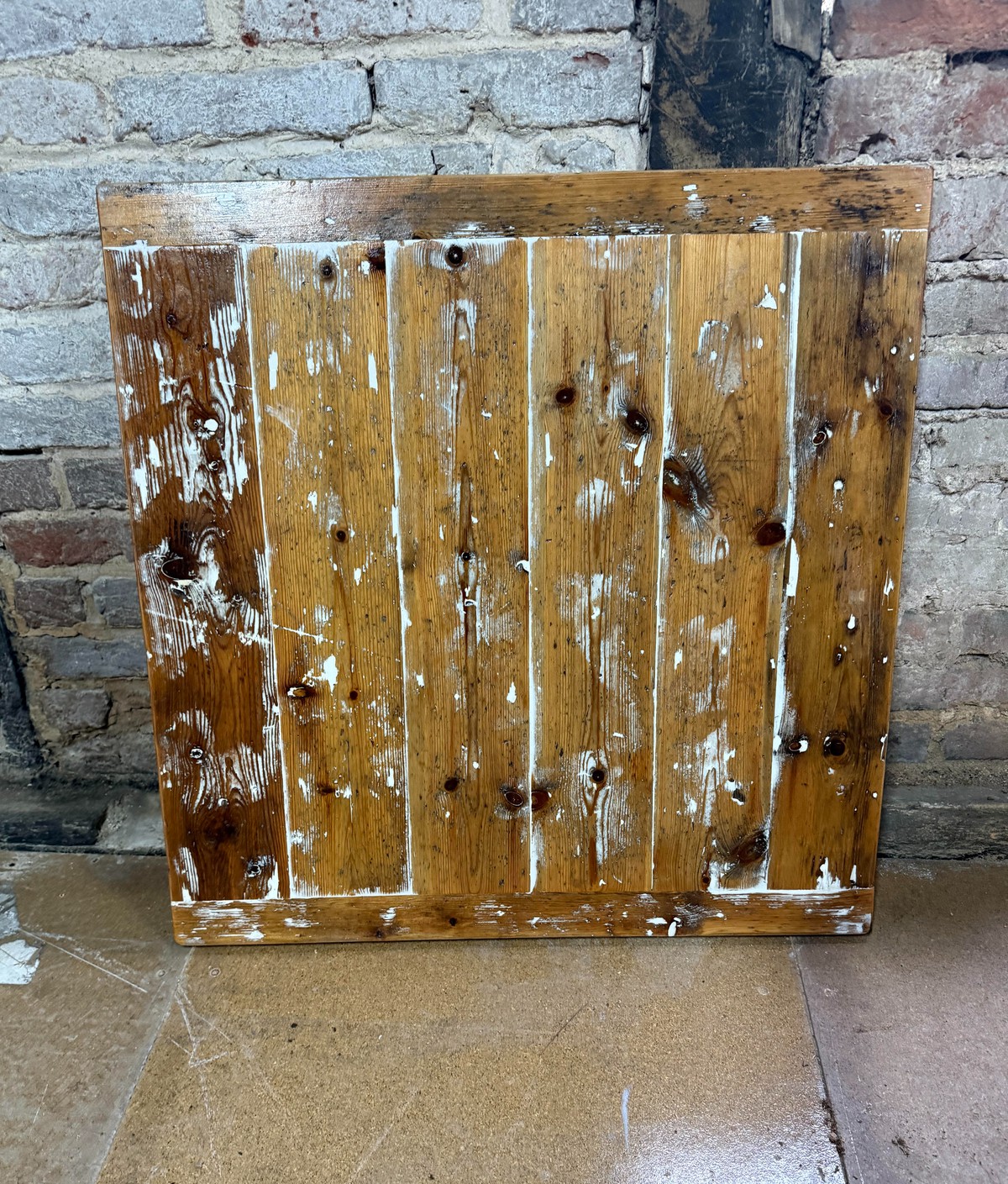 Reclaimed wooden cafe table tops made from Victorian floorboards salvaged from a property just off of Trafalgar Square, London.Tops finished with wood filler to create a smooth surface and protected with three coats of bar top varnish.