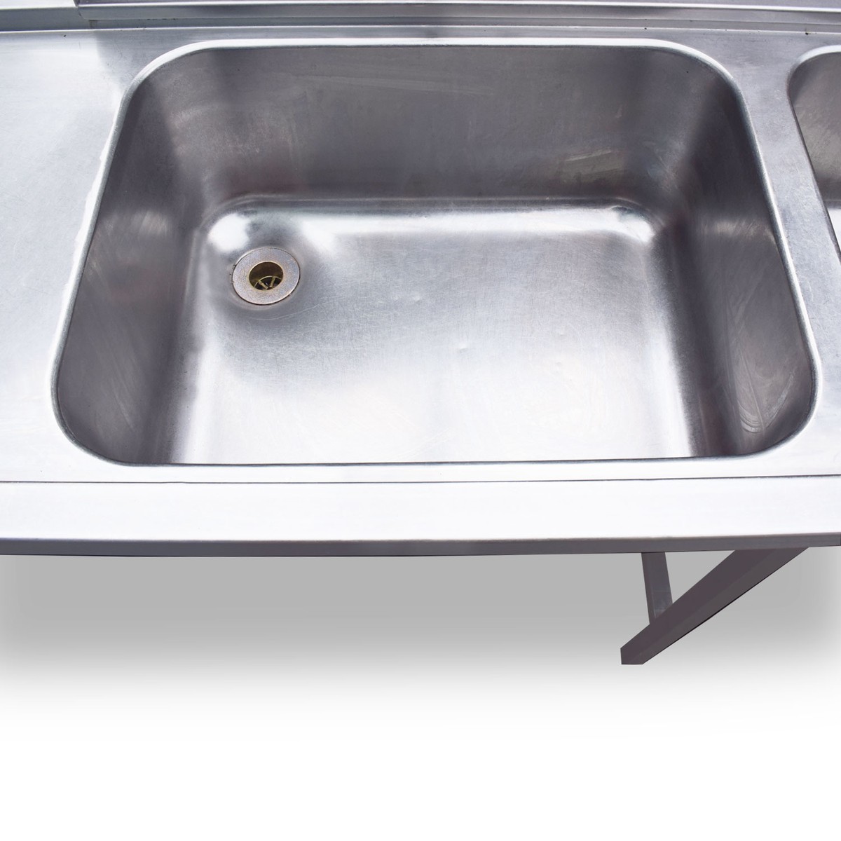 Stainless steel double sink designed to be compatible with a pass through dishwasher.Features 2 large sink bowls, bin chute and splash back.
