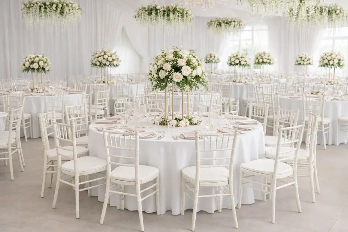 Weddings, banquets, conferences, and large-scale events where a clean, elegant seating option is required.
