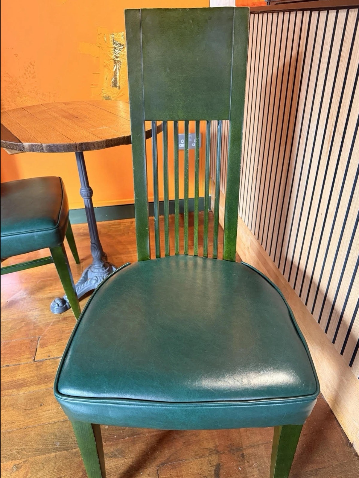 42x tall back wooden chairs with padded leather seat.Click here for more products from Eastbourne Catering Equipment - Sussex