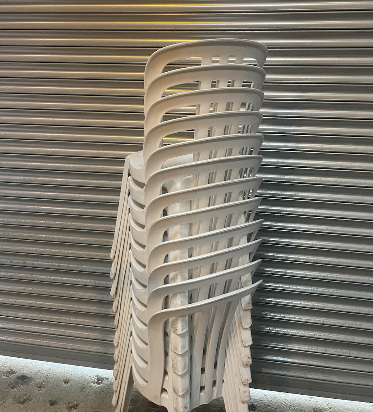 Bistro Chairs Inc seat padsWe have 300 white bistro chairs for sale